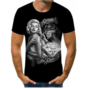 Skull 3D Digital Printing Round Neck Short Slee...